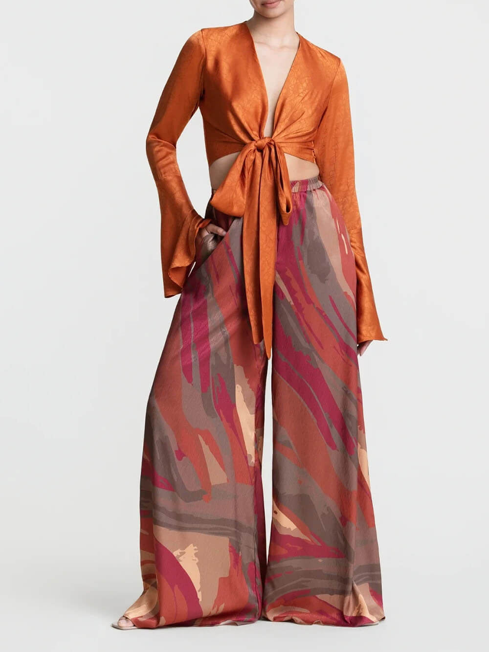 Casual Colorful Printed Loose High-Waisted Wide-Leg Pants